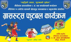 कैलालीको गौरीगंगा नगरपालिका वडा नम्बर–८ को कार्यालयको आर्थिक सहयोग तथा गौरीगंगा ११ स्पोर्टस् क्लब को सहकार्यमा यू–१४ वर्षमुनिका बालबालिकाका लागि फुटबल प्रशिक्षण कार्यक्रम सञ्चालन हुने भएको छ।
